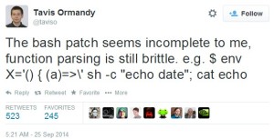 很快,CVE-2014-6271的官方补丁出来的了——Bash-4.3 Official Patch 25。