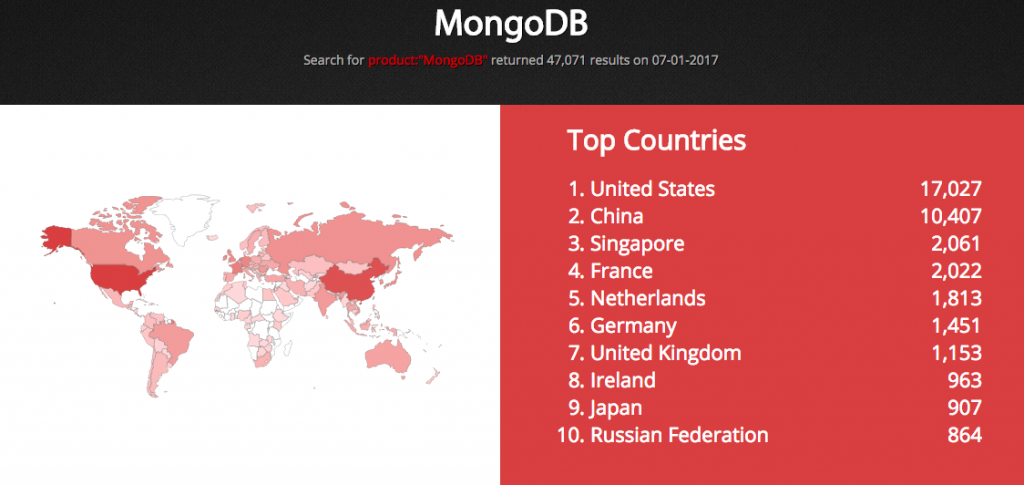 让我们去看一下Shodan上可以看到的有多少个在暴露在公网上而且没有防范的MongoDB?我了个去!4万7千个,还是很触目惊心的(下图来自我刚刚创建的 Shodan关于MongoDB的报表