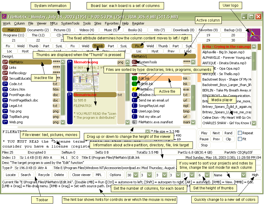 不过,比起下面这个来,wGetGUI算不上什么了。下面这个软件叫做:FileMatrix,这个界面是前所未有的经典,那叫一个相当强大啊。估计可以节省很多对话框和tab页了,把软件的所有功能全部一次性陈列出来。这也是程序员的杰作。(点击图片,你可以慢慢欣赏下面这个UI的细节)